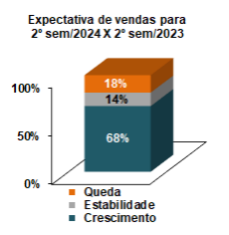 Ainda para 2024, as indicações de queda permaneceram em 10% e de estabilidade atingiram 21%.