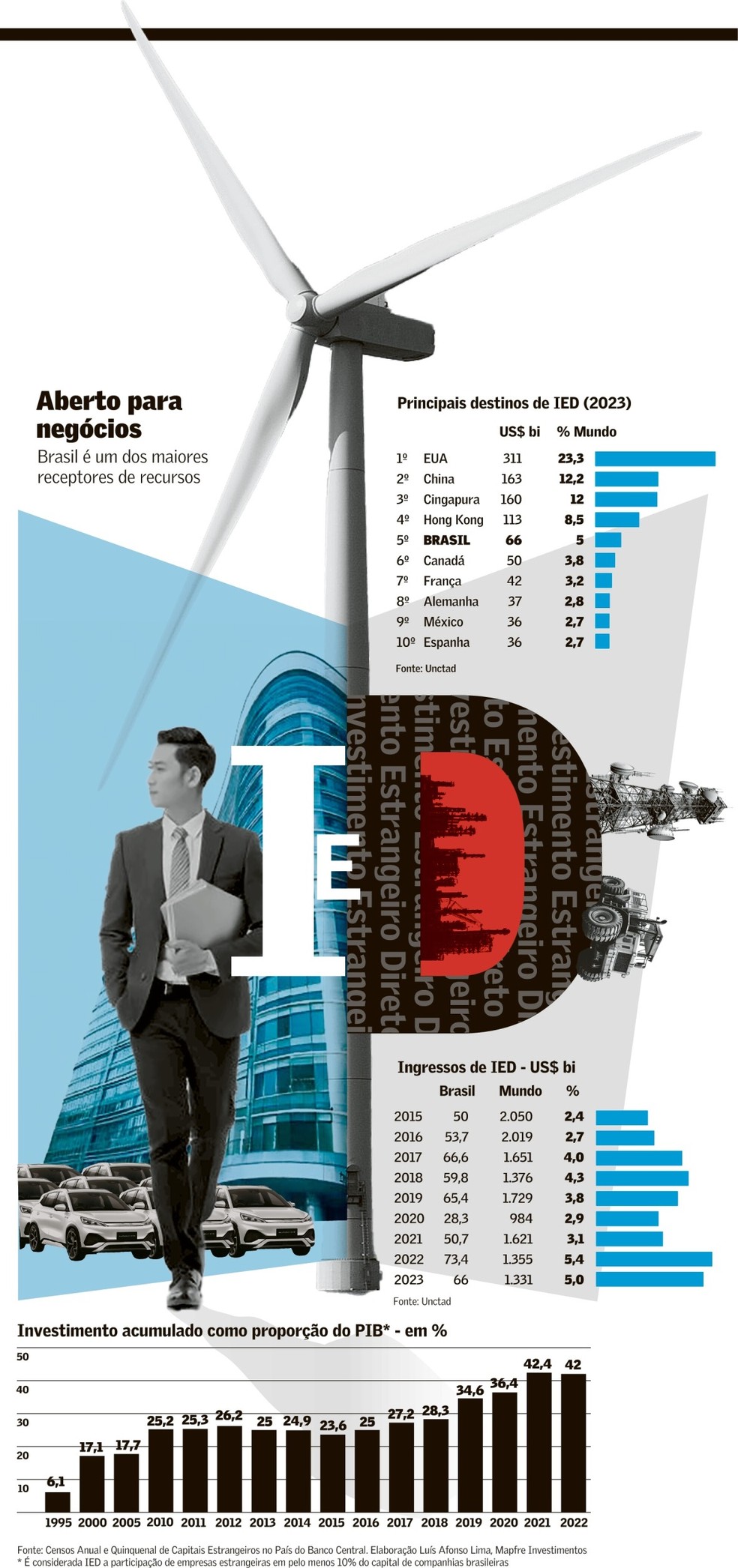 Viana estima que se aproxima uma “era trilionária”, em que o estoque de investimento estrangeiro no país atingirá US$ 1 trilhão. Em sua projeção, o número deve ser alcançado em 2026. Atualmente, o estoque está em cerca de US$ 800 bilhões. “Só o que falta é recuperar o grau de investimento, que vai destravar muitas possibilidades.”