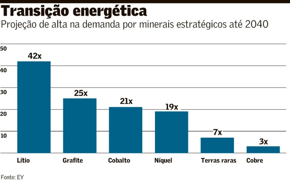 Minerais estratégicos têm grande potencial de expansão em sua demanda em função do uso em painéis solares, aerogeradores eólicos, baterias de veículos elétricos e componentes eletrônicos. “Empresas em todo o mundo assumiram compromissos de descarbonizar suas atividades. Isso só é possível utilizando fontes de energia limpa”, diz o consultor Afonso Sartorio, sócio da EY Brasil.