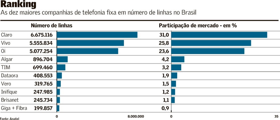 Hoje o país ainda tem 21,5 milhões de linhas de telefonia fixa (17 milhões de autorização e 4,5 milhões de concessão). Há cinco anos, eram 36 milhões (20 milhões de concessão e 16 milhões de autorização). “Caíram 15 milhões de acessos das concessionárias, e as autorizatárias ganharam 1 milhão de linhas, mas foi muito mais um movimento de troca de operadora do que novos consumos”, diz José Felipe Ruppenthal, diretor da Telco Advisors.