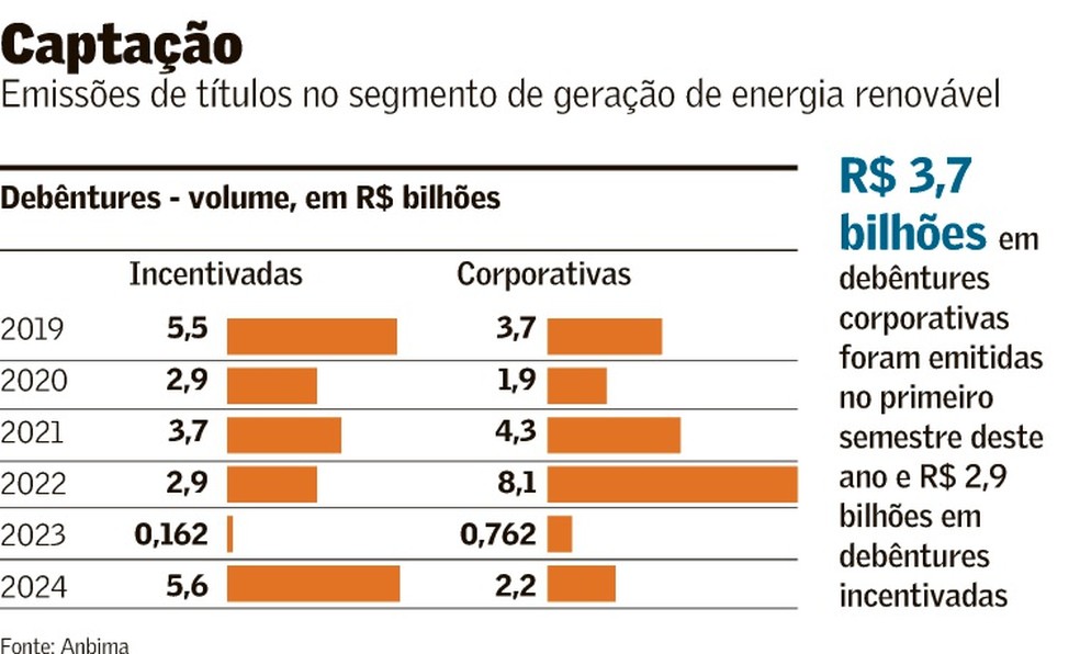 Apesar de o volume total de projetos de renováveis financiados por debêntures de infraestrutura (que dá isenção de Imposto de Renda ao emissor) e debêntures incentivadas (que isenta de IR o investidor pessoa física), ter aumentado no primeiro semestre do ano, chegando a R$ 6,6 bilhões, contra R$ 4,83 bilhões, no mesmo período de 2024, os empréstimos têm sido rigorosos com os projetos menores.