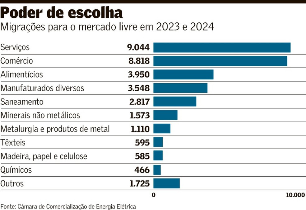 Um ano depois do acesso ao mercado livre de energia elétrica para todos os consumidores conectados à rede de alta tensão ter sido autorizada, o setor bate recordes, evidenciando o potencial do segmento e a demanda reprimida. Foram 26.834 novos consumidores em 2024, alta de 263% em relação ao ano anterior, segundo a Câmara de Comercialização de Energia Elétrica (CCEE). O maior volume de adesão veio, principalmente, dos serviços e do comércio.