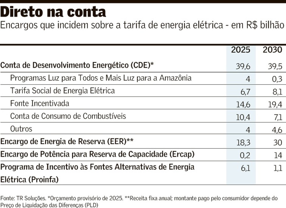 “Até 2030, o custo deve cair com a maior interligação no sistema”, avalia Gabriel Martins Lemos, analista de regulação da TR. Ainda na CDE, também devem encolher os valores atualmente destinados aos programas Luz para Todos e Mais Luz para a Amazônia, com alta do volume voltado à Tarifa Social de Energia Elétrica.